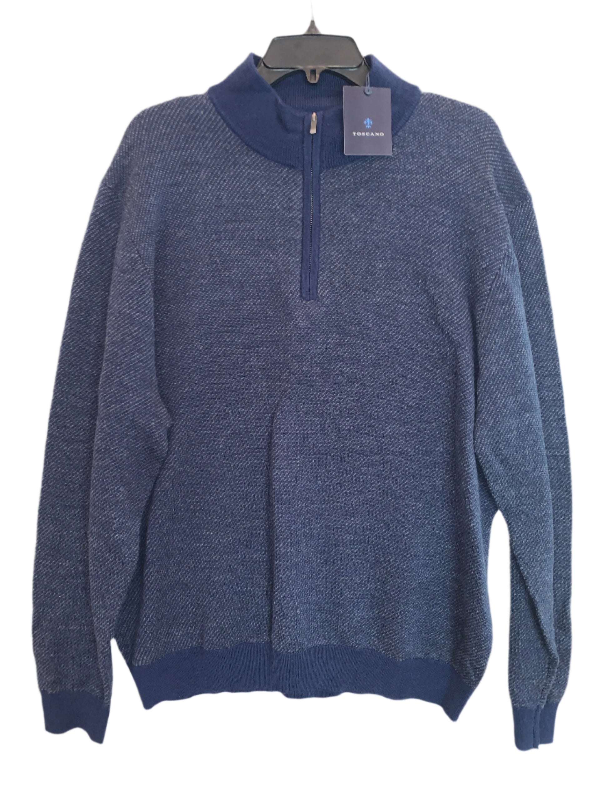New - Men's Toscano Mock Neck Quarter Zip Diagonal Sweater - Blue - XL - Designer