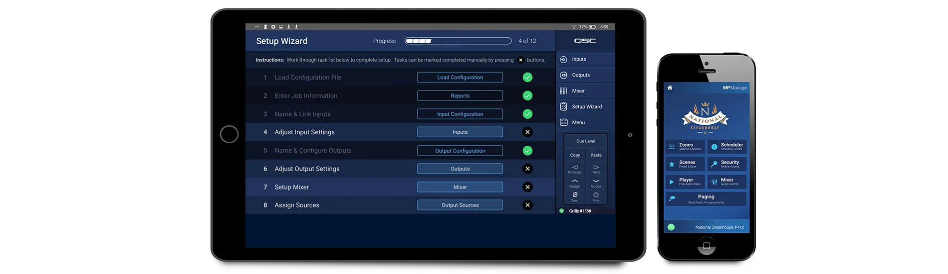 The MP Manage app is designed for iOS and Android tablets and smartphones to provide wireless day-to-day operation of basic system functions including zone level control and source selection, scene recall, scheduling, and mixer control. It also offers a unique store-and-forward paging functionality to the MP-M Series mixer.